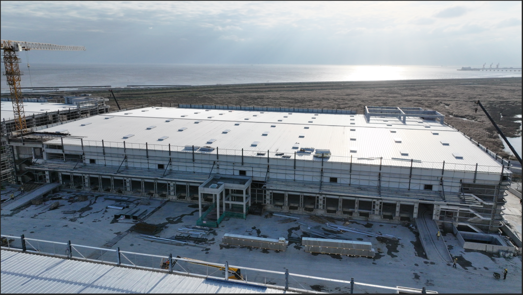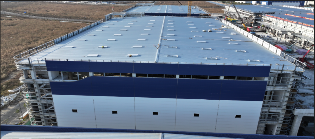 濟(jì)寧一建鋼結(jié)構(gòu)工程有限公司承建的金屬屋面及維護(hù)工程,涉及1#-4#物流倉庫、高架立體庫。倉庫跨度80米,屋面標(biāo)高34.1米,為雙向找坡結(jié)構(gòu)。該項(xiàng)目建設(shè)規(guī)模大、工期緊、技術(shù)精度要求高、工況復(fù)雜,自項(xiàng)目開始施工。公司對(duì)現(xiàn)場(chǎng)管理嚴(yán)格要求,積極配合業(yè)主及總包的整體調(diào)配,施工嚴(yán)格執(zhí)行施工方案,遵循規(guī)范標(biāo)準(zhǔn),合理安排人、機(jī)、料等,戮力同心將馬士基臨港旗艦倉項(xiàng)目打造成精 品工程、優(yōu) 質(zhì)工程。